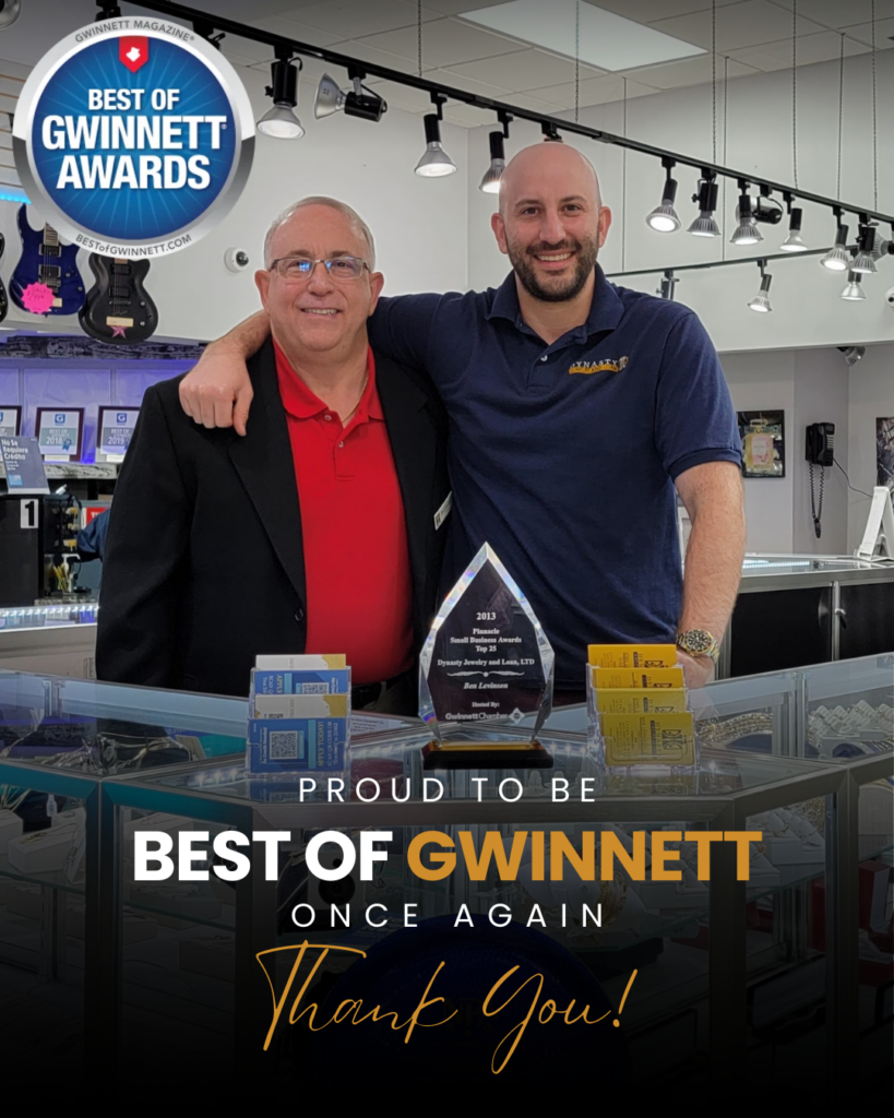 Dynasty proudly earned Best of Gwinnett Pawn Shop honors in 2016, 2017, 2018, 2020, 2021, 2023, 2024, and 2025, further securing its reputation as Gwinnett’s top pawn shop.